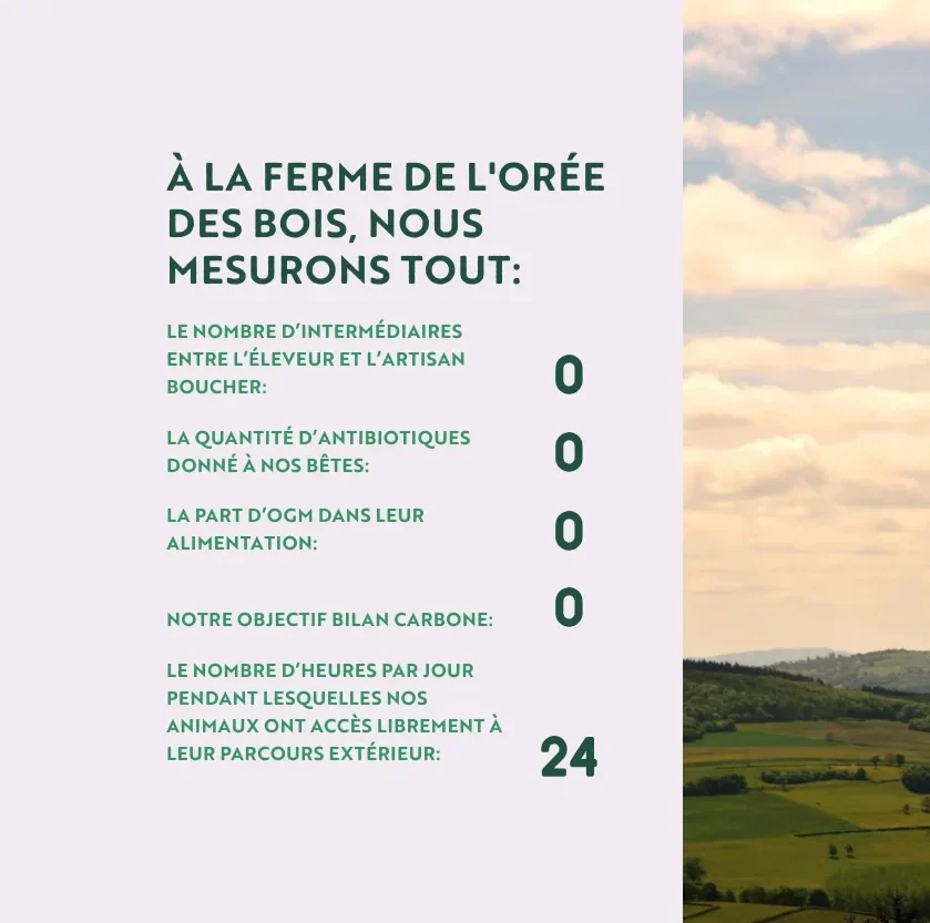 Ce message repose sur une prise de position forte et différenciante, appuyée par des chiffres clés pour renforcer la cohérence et la clarté : « Nous croyons que le nombre de labels affichés ne garantit pas une véritable démarche d’agriculture raisonnée. »