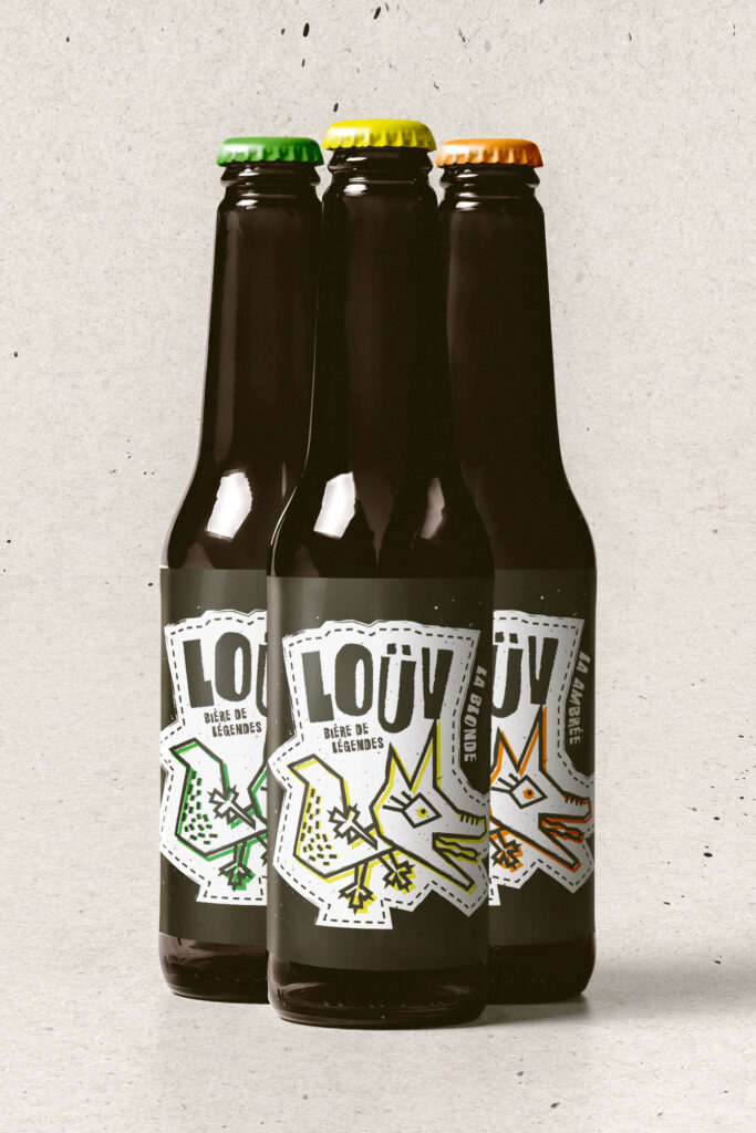 Lors du second rendez-vous, on leur a présenté quatre propositions de noms, chacune accompagnée d’un univers visuel pour aider à se projeter. Et c’est là qu’un nom a fait tilt : La Loüv, bière de légendes.
